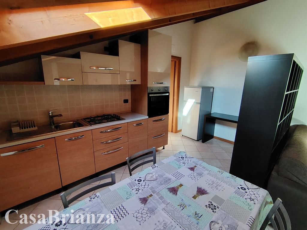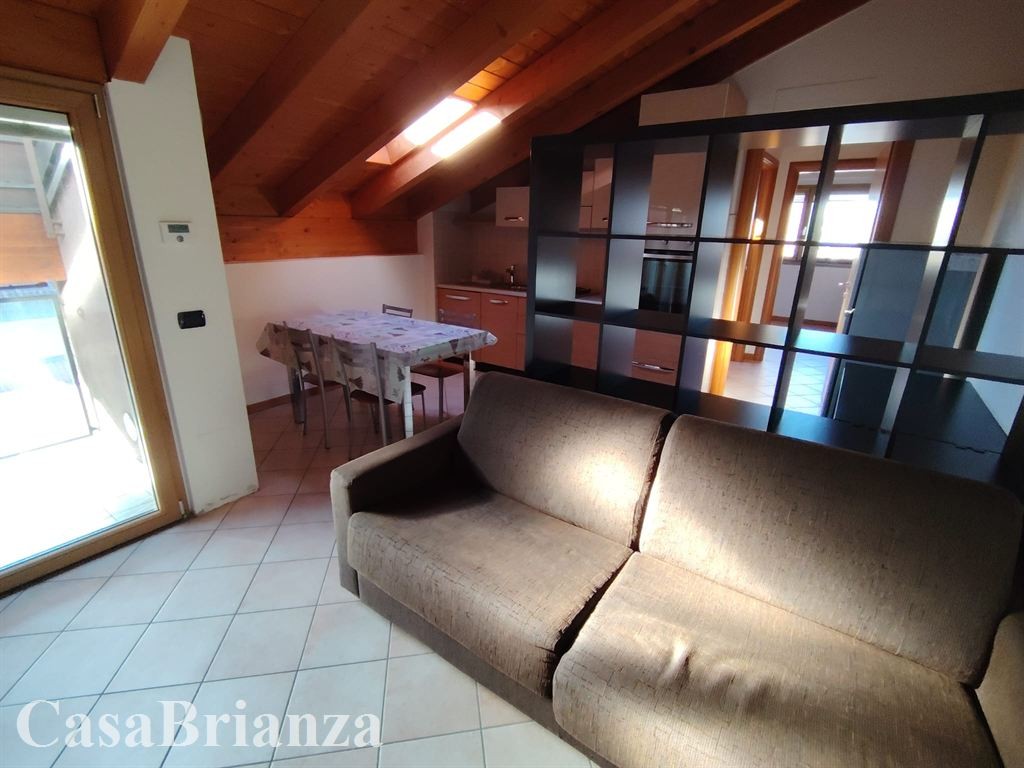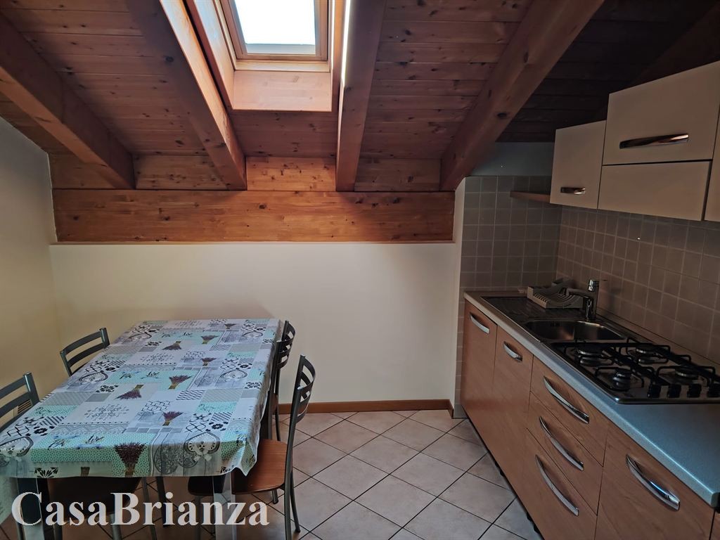 Desio, frazione San Giorgio, non lontano dalla stazione di Desio e comodo con la strada statale 36 (Nuova Valassina), proponiamo in locazione mansarda di due locali, arredata con mobili moderni. (manca la lavastoviglie - lavatrice - materasso). Composizione: soggiorno con cucina a vista con piccola loggia, camera matrimoniale, disimpegno, bagno con doccia. Contratto concordato (3+2) con la necessità di spostare la residenza. Palazzina costruita nell’anno 2010, classe energetica D, spese condominiali euro 50 al mese salvo conguaglio, riscaldamento autonomo a pavimento con caldaia di nuova generazione con un buon risparmio energetico. Libero entro il 15 Marzo 2026. Richieste referenze.
